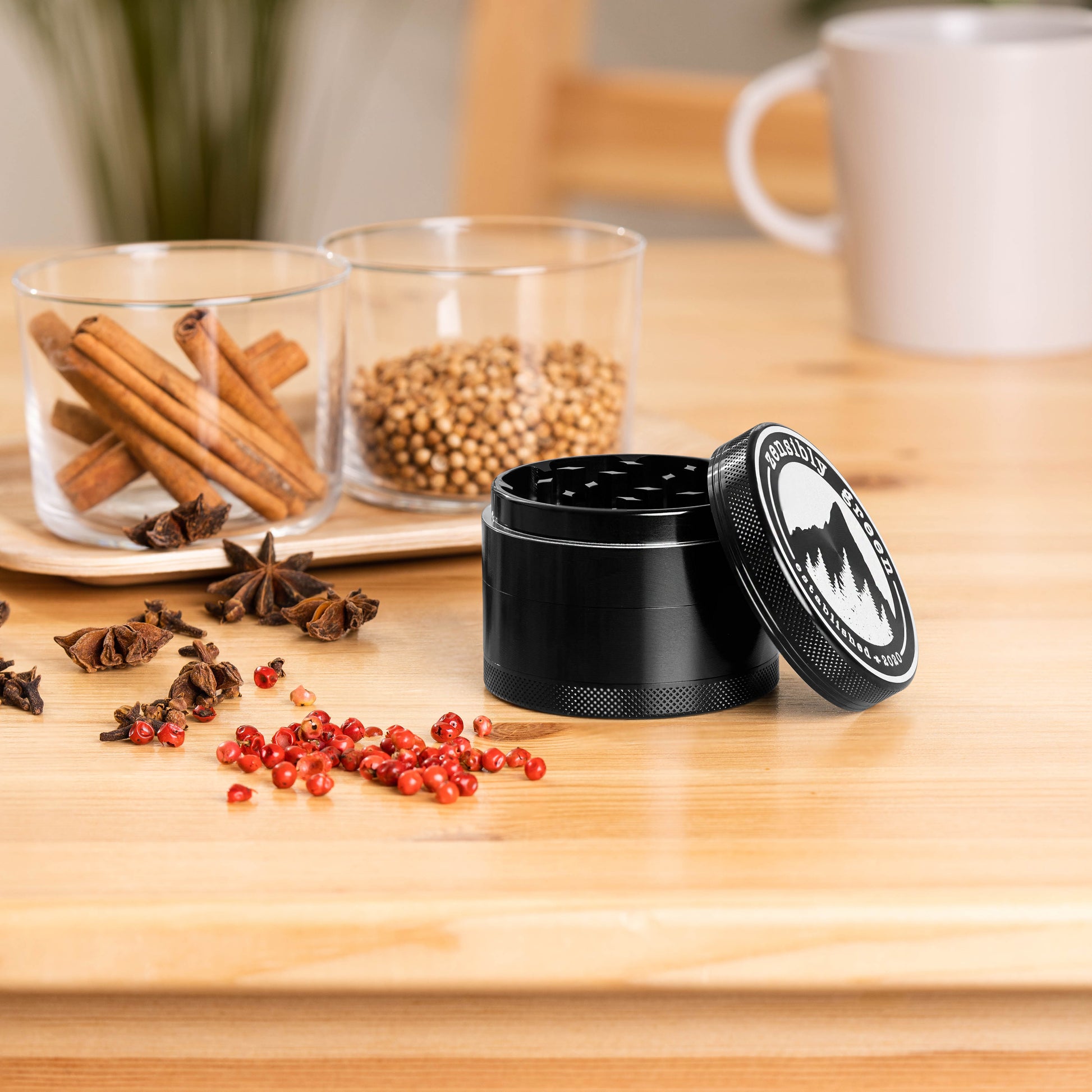 - Ergonomic twist-action with magnetic lid for safe, spill-proof grinding